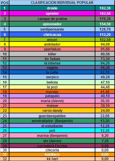 Nuevamente cambio de líder en la clasificación Fórregan, cogiendo el timón el hermano Dreide gracias a su participación en la carrera popular de Castilblanco. El mano a mano está asegurado durante esta temporada, y aún queda lo mejor.